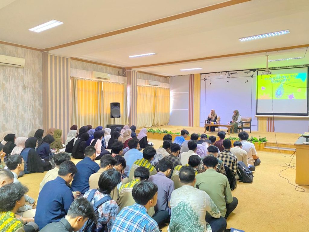 Suasana kuliah tamu berlangsung interaktif. Banyak mahasiswa yang aktif bertanya seputar tantangan memulai bisnis, strategi menembus pasar ekspor, hingga cara menyeimbangkan antara idealisme seni dan permintaan pasar.